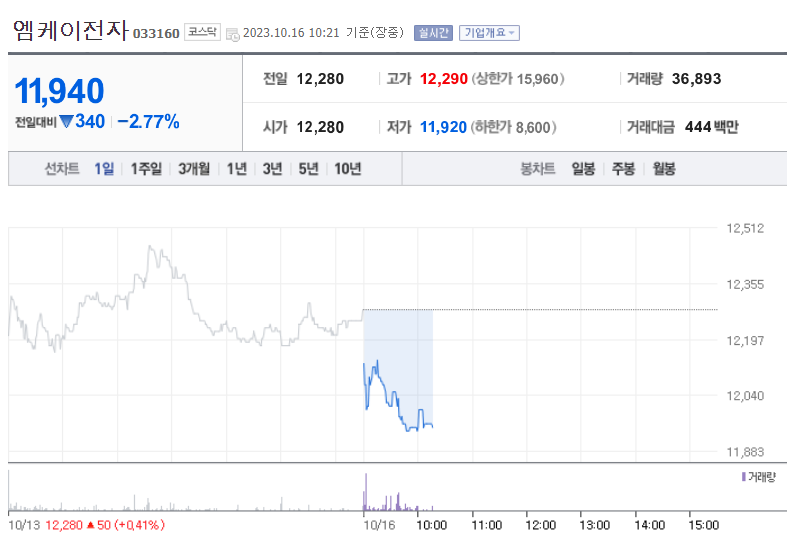 1982년 12월 16일에 주식회사 미경사로 설립됨. 1997년 8월 8일자로 상호를 엠케이전자주식회사로 변경하였음. 반도체 Package의 핵심부품인 본딩와이어(Bonding Wire) 및 솔더볼(Solder Ball) 등 전자부품 등을 생산하는 사업을 영위하고 있음. 엠케이전자는 오션비홀딩스의 기업집단에 속한 계열회사이며, 이 중 상장사는 엠케이전자를 포함, 총 2개사임.