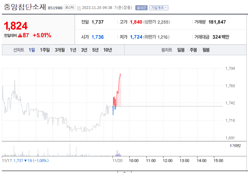 8. 중앙첨단소재(네트워크 장비 저평가주)