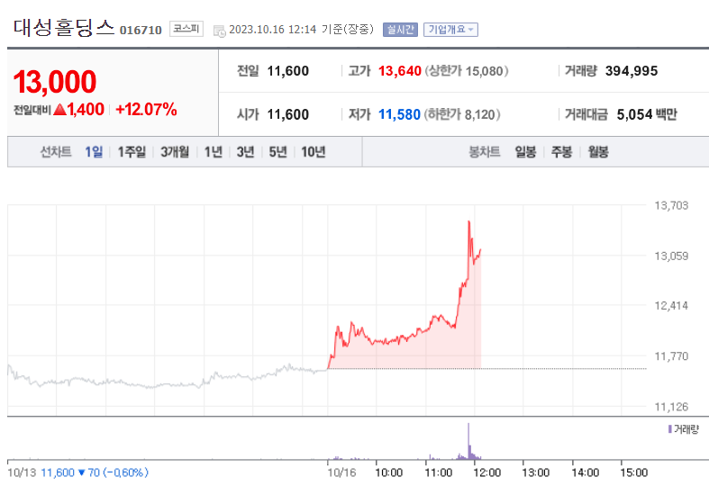 3. 대성홀딩스(난방비 도시가스 관련주)