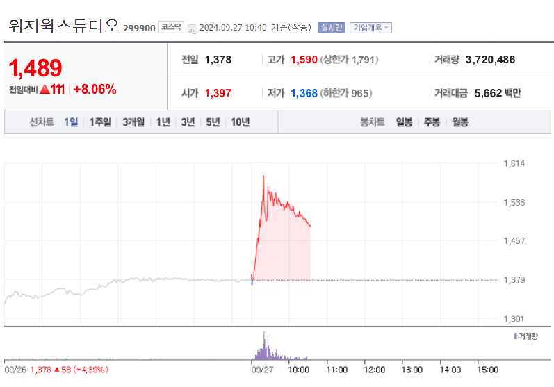 8. 위지윅스튜디오(메타버스 저평가주)