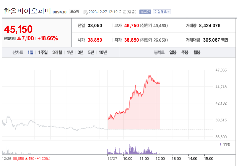 1. 한올바이오파마(면역항암제 대장주)