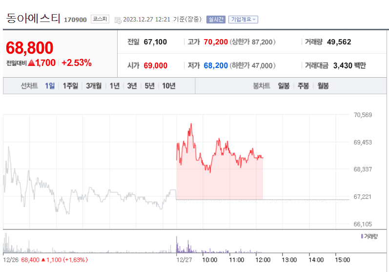동아에스티는 구 동아제약에서 인적분할하여 2013년 3월 1일에 설립된 신설법인으로 2013년 3월 4일에 등기되었으며, 주권은 2013년 4월 8일에 재상장 됨. 자가개발의약품, 바이오의약품, 제네릭, 도입의약품 등 다양한 제품 포트폴리오를 가지고 있으며 다수의 블록버스터 제품을 바탕으로 시장지배력을 강화함. 의료 서비스 기대치 상승에 부응하는 의약품 연구개발 활성화 등으로 인해 국내 제약산업의 계속적인 성장을 기대하고 있음.