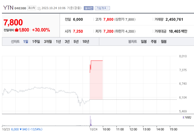 1. YTN(미디어, 방송/신문 대장주)