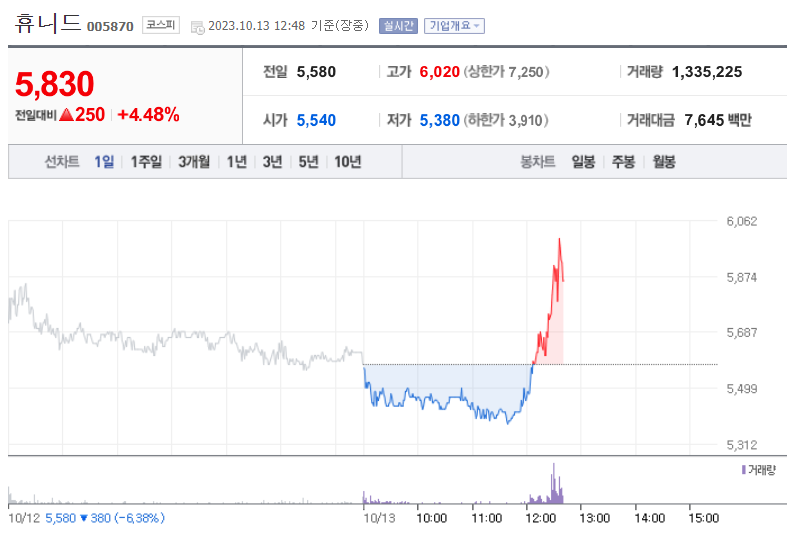 6. 휴니드(방산주 관련주)