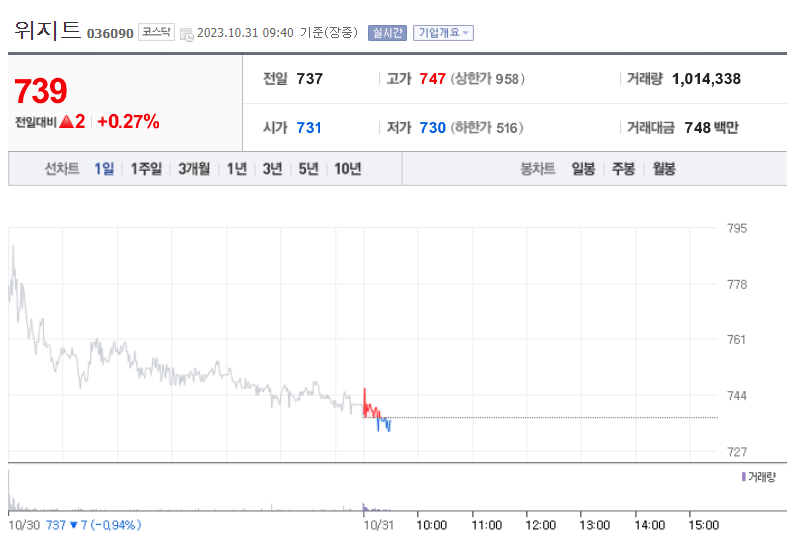 위지트는 1997년 2월 계측기기 제조 및 판매를 영위할 목적으로 설립되었으며 2005년 1월 원일시스템을 흡수합병함. 국내 최초로 디스플레이 소모성 부품인 상부전극의 국산화 개발에 성공. 이후 고유의 기술력과 정밀가공, 증착, 식각에 적용되는 장비의 소모성 부품을 생산. 위지트는 국내외 주요 디스플레이 제조업체들과의 협력 관계를 기반으로 전방산업 기술 고도화에 대응해 왔으며 정부로부터 소재, 부품, 장비 전문기업으로 선정됨.