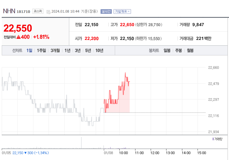 2013년 8월 네이버의 게임사업 부문을 인적분할하여 설립되었으며, 현재 온라인 및 모바일게임 사업과 간편결제 서비스 및 웹툰 서비스 등을 운영하고 있음. NHN은 크루세이더퀘스트, 킹덤스토리 등의 RPG 등 다양한 장르의 게임을 통해, 다변화된 모바일게임을 선호하는 이용자들의 기대에 부응하고 있음. 매출구성은 결제및광고 약 46.22%, 기타 약 33.40%, 게임 약 20.38%로 이루어져 있음.