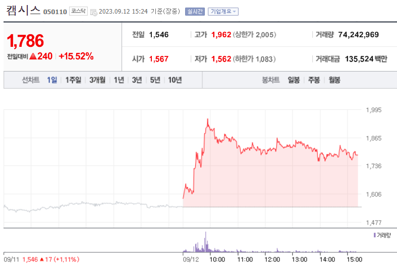 2. 캠시스(자율주행 저평가 관련주)