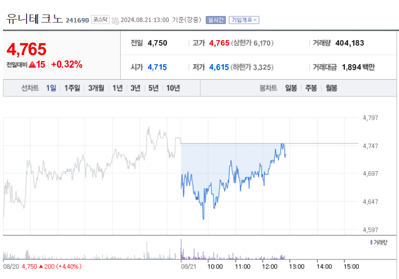 유니테크노는 가정용 ESS와 차량의 배터리 셀 케이스 및 엔진과 차량의 윈도우 및 와이퍼용 모터부품 등 차량의 구동 및 전장품에 사용되는 다양한 모터류의 부품 및 조립을 하고 있음. 주요 고객사는 삼성SDI, 디와이오토 Behr 사 등의 자동차 부품 제조 업체임. 유니테크노의 배터리 셀 부품 제조 및 조립은 유니테크노가 특허를 낸 공법에 따라 제작됨에 따라 타사 대비 낮은 불량률과 높은 생산성으로 기술적 안정성을 가지고 있음.