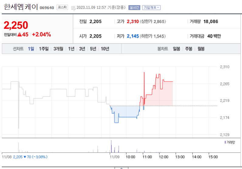 한세엠케이는 1995년 3월 31일에 설립되어, 2011년 6월 21일자로 유가증권시장에 상장되어 매매가 개시되었음. 한세엠케이는 TBJ, ANDEW, BUCKAROO, NBA등의 브랜드를 보유하고 10대에서 20대 연령층을 주요 고객층으로 영업을 진행중인 캐주얼의류 전문회사임. 성장동력 확보를 위하여 골프의류 진출을 위해 LPGA와 라이센스 계약을 체결하고 2016년 8월부터 매장전개를 시작함.