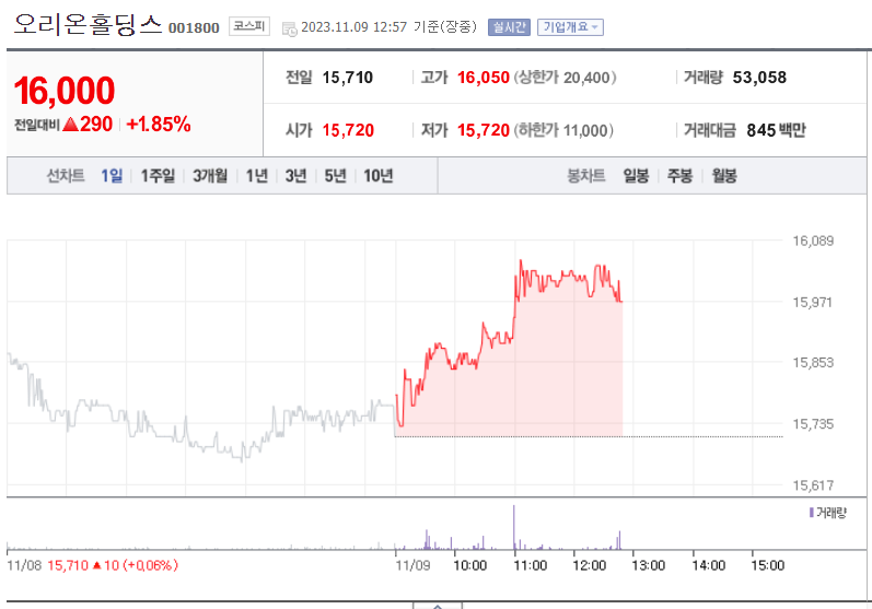4. 오리온홀딩스(중국긴축완화 수혜주)