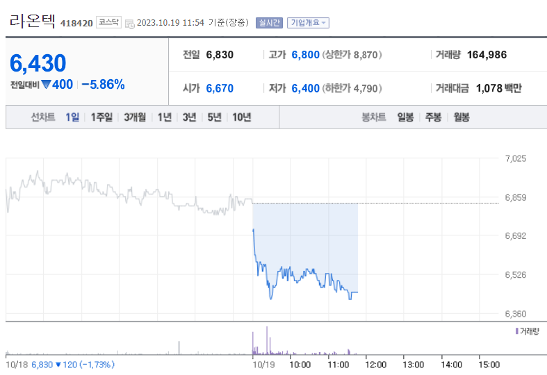 5. 라온텍(증강현실 AR 관련주)
