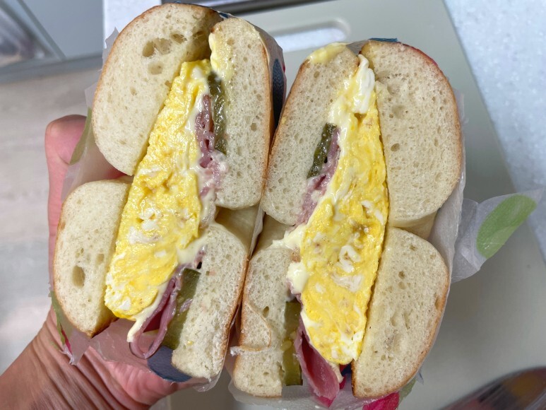 기존 스타벅스 에그베이컨치즈베이글에서 마요네즈와 피클이 추가된거 같은 맛이다.