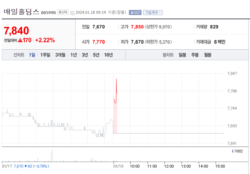 10. 매일홀딩스(출산장려정책 저평가주)