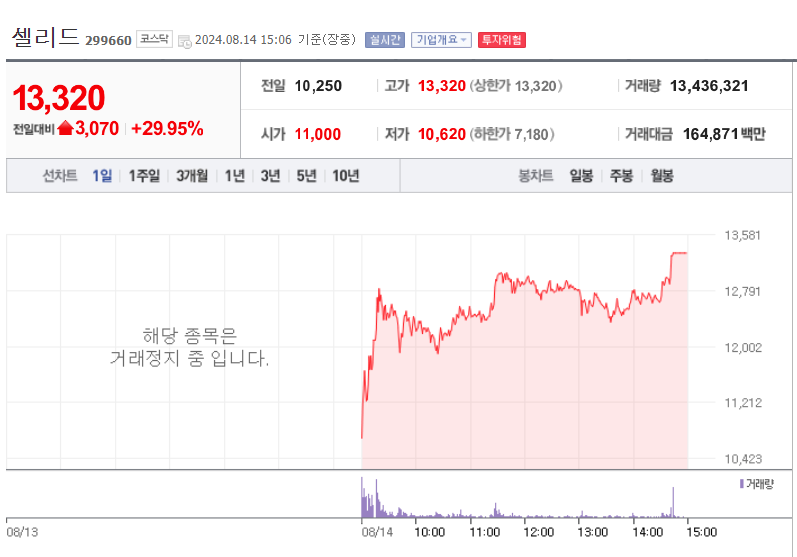 1. 셀리드(코로나백신 대장주)