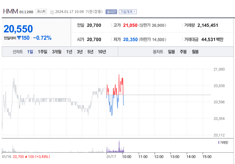 1. 대한해운(해운 대장주)