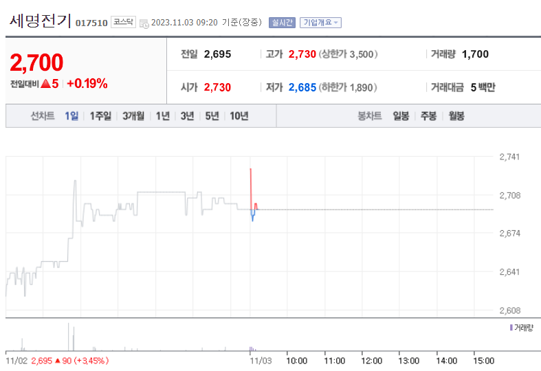 세명전기는 금속제품제조 및 판매사업을 영위할 목적으로 1962년 설립되었으며 1991년 12월 자로 코스닥시장에 상장됨. 송.배.변전선로 가설용 금구류를 제조하여 한국전력공사 등에 공급하고 있으며 전철용 금구류를 한국철도공사 및 지하철 공사 등에 납품하고 있음. 금구류산업은 대용량 전력설비의 전력송전에 필수적인 제품과 고속철도, 지하철 등의 주자재로서 고도의 제작기술을 필요로 하는 기술집약적인 사업임.