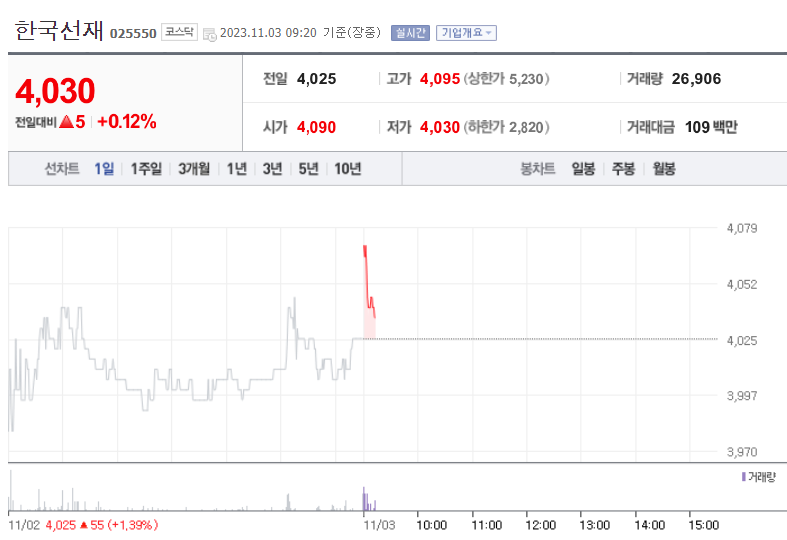 한국선재는 선재류(아연도금철선, 스테인리스강선) 제조가공 및 판매를 영위할 목적으로 1990년에 설립됨. 주요 제품으로는 철강재, 아연도금 철선, 스테인리스강선 등이 있으며 종속회사를 통하여 고가의 장비 또는 설비의 핵심부품으로 사용되는 제품인 계장용 Fitting 및 Valve를 생산하고 있음. 한국선재는 종속회사로 튜브피팅과 함께 밸브 생산, 판매하는 한선엔지니어링과 화물운송알선 사업을 영위하는 금제를 두고 있음.