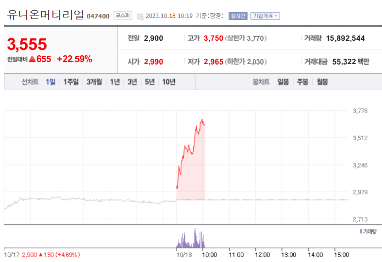 1. 유니온머티리얼(희토류 대장주)