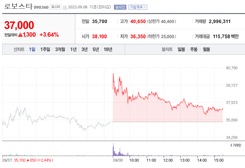 로보스타는 1999년 직각좌표로봇과 수직다관절로봇등 산업용 로봇의 개발과 제조 및 판매업을 목적으로 설립됨. 2023년 1분기말 현재 동사의 주요 주주는 LG전자(33.4%) 임.