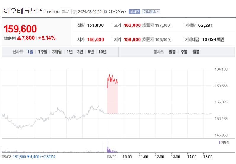 2000년 8월 24일 코스닥시장에 상장하였으며, 반도체 레이저마커, 레이저응용기기 제조 및 판매를 주된 사업으로 하고 있음. 지난 1989년 설립 이래로 레이저 마킹분야를 시작으로 드릴링, 트리밍, 커팅 등 다양한 레이저 응용분야로 진출해오고 있으며, 30여년간 꾸준하게 성장해 오고 있음. 이오테크닉스의 레이저 응용기술은 반도체, PCB, Display, 휴대폰 산업의 경기와 밀접한 연관이 있음.