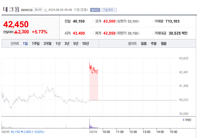 테크윙은 2002년 설립되어 반도체 테스트 검사 장비를 개발 및 출시하였으며 2011년 코스닥에 상장하였음. 테크윙은 Probe Station, HBM Handler, Memory 및 SOC Test Handler 등 반도체 전 분야의 검사장비 개발 및 제조에 세계적인 경쟁력을 보유하고 있음. 테크윙은 SK하이닉스, Micron, Kioxia, Intel, Infineon 등 유수의 글로벌 반도체 회사들에게 장비를 공급하고 있음.